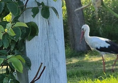 Vilą supa privatus 2 ha parkas, kurį sukūrė vilos šeimininkė Aušrinė, kraštovaizdžio dizainerė. Per savo langus matysite pergolę su rožėmis, prerijų sodų želdynus bei ežero panoramą. Nenustebkite, jei jus aplankys gandrų šeimyna, mūsų praminta Petrais. Jie vasaroja mūsų sodyboje jau šešerius metus.
